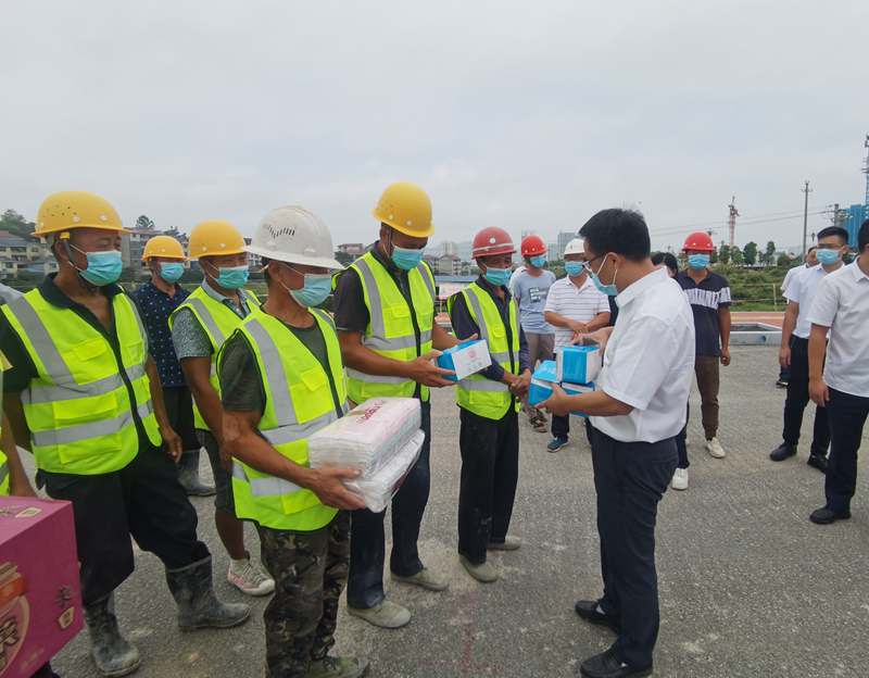 8月28日上午,懷化市城市建設(shè)投資有限公司領(lǐng)導(dǎo)班子成員帶領(lǐng)公司全體黨員(含預(yù)備黨員)、項(xiàng)目負(fù)責(zé)人60余人分三隊(duì)前往太平橋地下停車場、懷化職院公共實(shí)訓(xùn)基地、雙擁公園等9個在建項(xiàng)目的施工現(xiàn)場,結(jié)合“我為群眾辦實(shí)事”開展工地走訪慰問的志愿者活動,通過活動為一線工人送上黨的關(guān)心和問候,讓堅(jiān)守在一線崗位的工人實(shí)實(shí)在在感受到黨的關(guān)懷和溫暖。