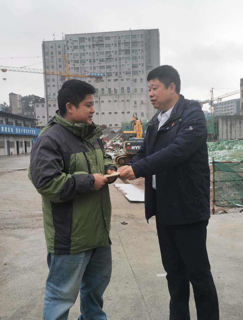 公司黨委副書(shū)記、總經(jīng)理江中同志慰問(wèn)錦園路項(xiàng)目一線(xiàn)困難群眾,并向堅(jiān)守在項(xiàng)目建設(shè)一線(xiàn)的工人們提前送上新春慰問(wèn),致以衷心的感謝和美好的祝愿,感謝大家為項(xiàng)目建設(shè)付出的巨大努力。江中強(qiáng)調(diào),項(xiàng)目負(fù)責(zé)人要做好各項(xiàng)服務(wù)保障工作,確保大家過(guò)一個(gè)歡樂(lè)祥和的春節(jié)。