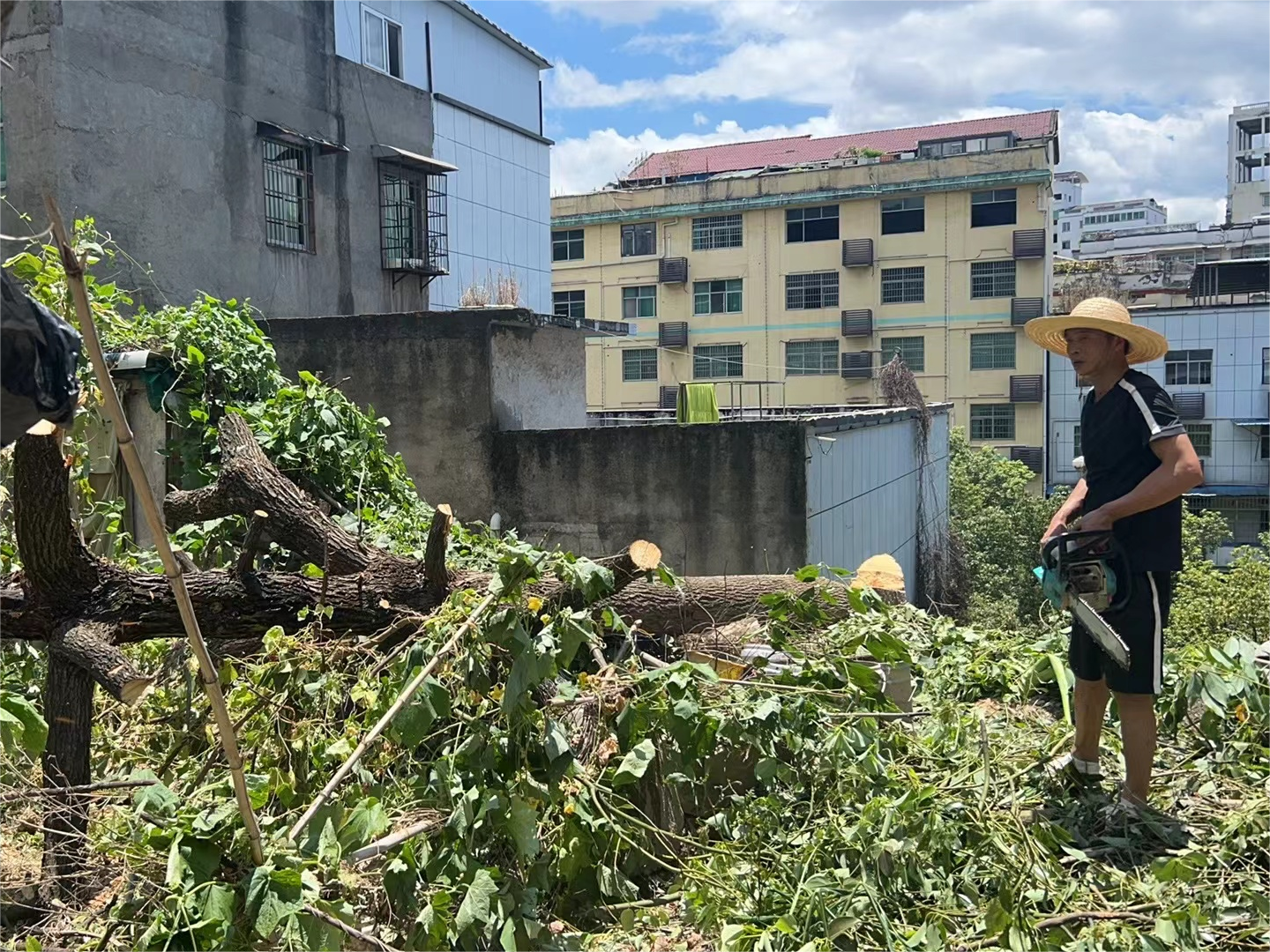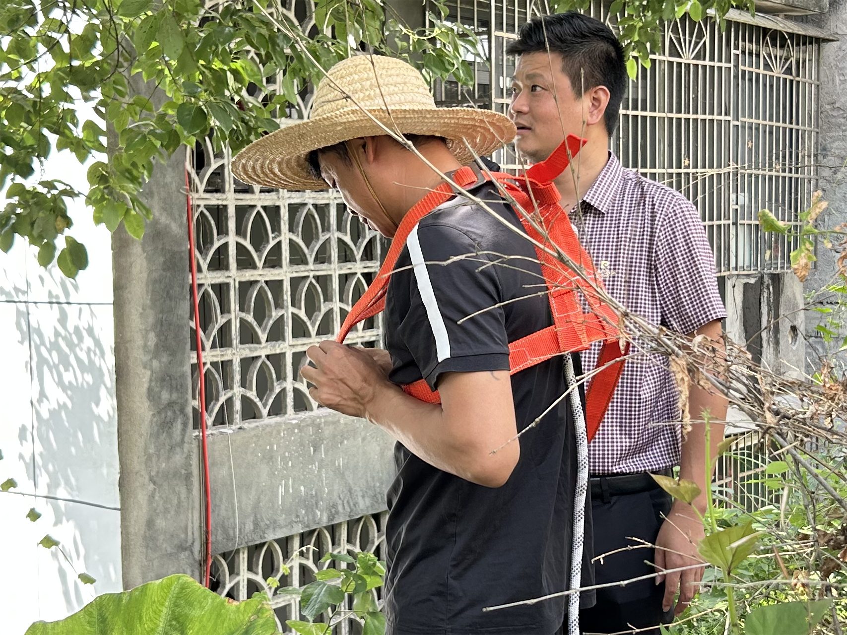 為保障人民群眾生命財(cái)產(chǎn)安全,消除安全隱患,市城建投公司在防汛期間開展安全隱患點(diǎn)排查過程中,發(fā)現(xiàn)芷江路社區(qū)位于迎豐西路842號(hào)門店背后高邊坡一棵香樟樹下土壤流失嚴(yán)重,存在傾倒風(fēng)險(xiǎn),危及房屋安全。作為該社區(qū)的后盾單位,市城建投立即派全資子公司工程建設(shè)公司專業(yè)人員現(xiàn)場查看,及時(shí)對(duì)接,并于7月18日上午,組織城發(fā)物業(yè)公司5名工作人員帶著安全繩、電鋸等工具到達(dá)現(xiàn)場開始作業(yè)。