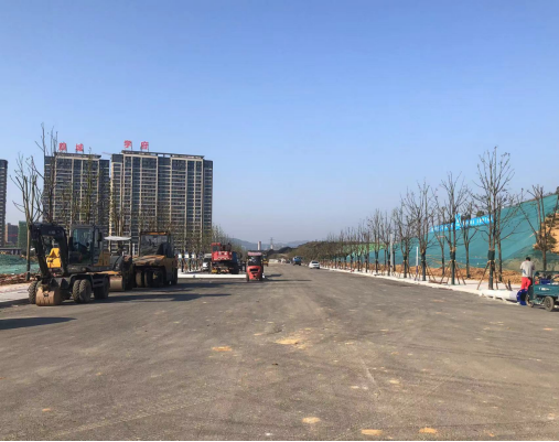 目前,高鐵新城一期配套道路項目中楊村路、園藝路、翹楚南路、翹楚北路、楊角沖路第一層瀝青已鋪筑完成,且道路的電力通訊、園林綠化等附屬工程已基本完成,正在進行交安設(shè)施、路燈安裝,人行道第一層透水混凝土已基本完成;錦輝路正在進行水穩(wěn)層鋪筑。