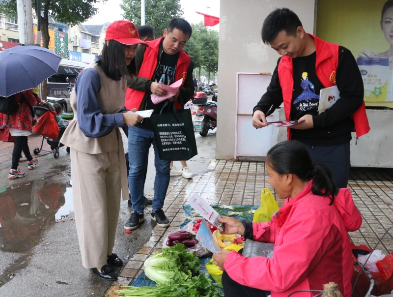 上午九點(diǎn),雖漫天細(xì)雨,志愿者的熱情卻不減?;顒?dòng)負(fù)責(zé)人跟大家交代好注意事項(xiàng)后,志愿者們分隊(duì)前往社區(qū)挨家挨戶發(fā)放綜治民意調(diào)查、“三城同創(chuàng)”、掃黑除惡、禁毒等各類宣傳手冊(cè),耐心給群眾講解宣傳冊(cè)內(nèi)容,讓市民了解并積極參與幸福社區(qū)的創(chuàng)建工作。