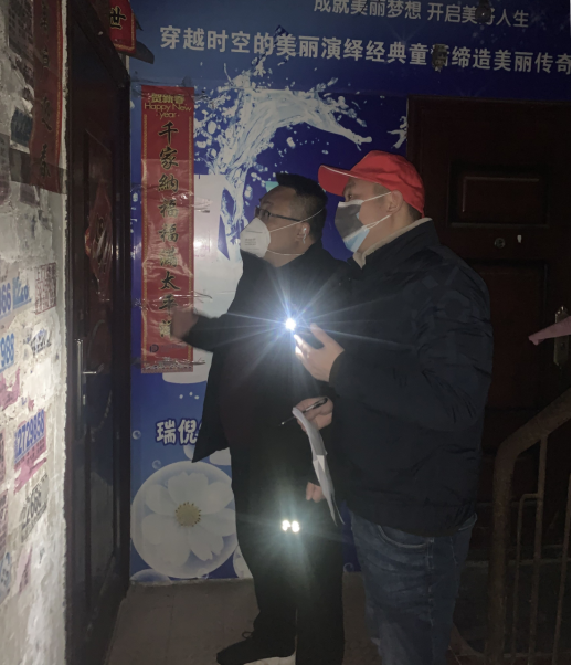 2月4日晚,黨委委員、紀委書記劉文帶隊排查白天不在家的住戶