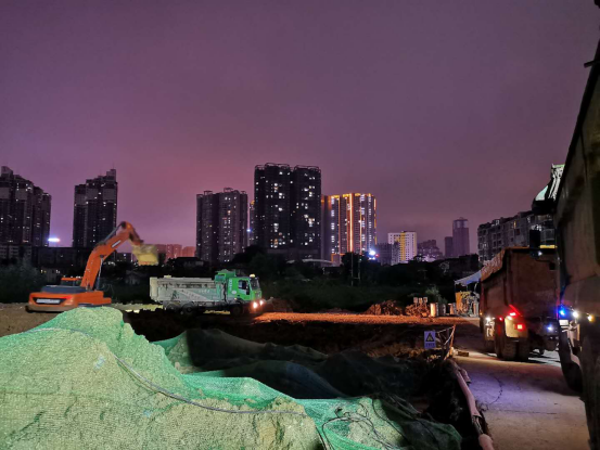 太平溪地下停車場加班進(jìn)行渣土外運(yùn)