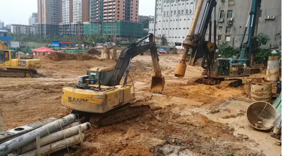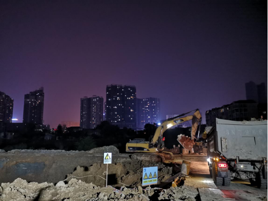 太平溪地下停車場加班進(jìn)行土方挖運(yùn)施工
