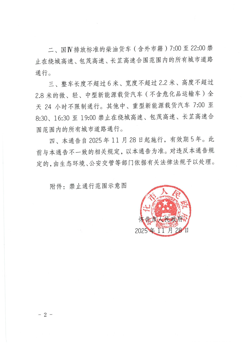 懷化市人民政府關(guān)于進(jìn)一步規(guī)范懷化市主城區(qū)貨車通行管理的通告