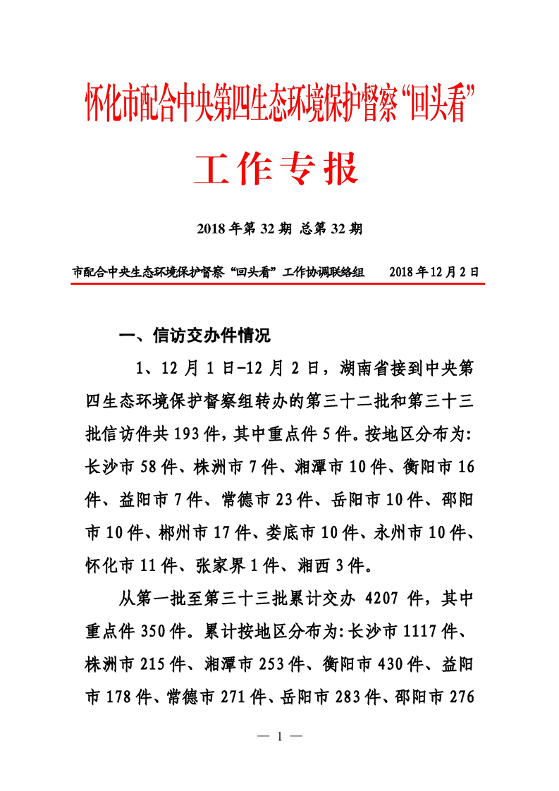 第三十二期 懷化市配合中央生態(tài)環(huán)境督察回頭看工作專(zhuān)報(bào)