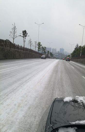 (紅星北路往湖天北路方向,在鐵路橋處往北上坡路面冰凍)