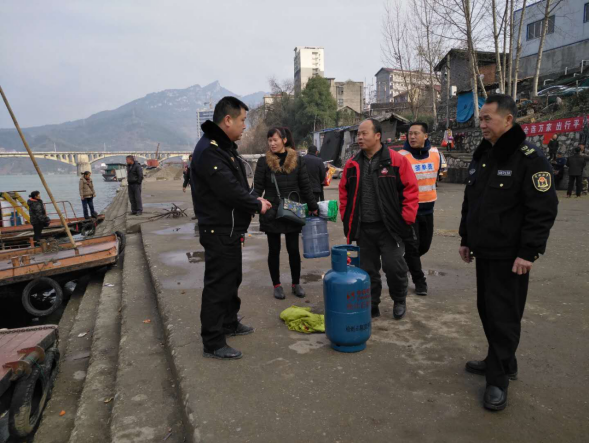 1月31日,春運(yùn)第11天,正值懷化市溆浦縣大江口鎮(zhèn)農(nóng)歷2018年最后一個(gè)趕集日,人多船多,溆浦縣地方海事處執(zhí)法人員一大早來到大江口碼頭開展現(xiàn)場安全檢查,禁止“危險(xiǎn)品”上船。