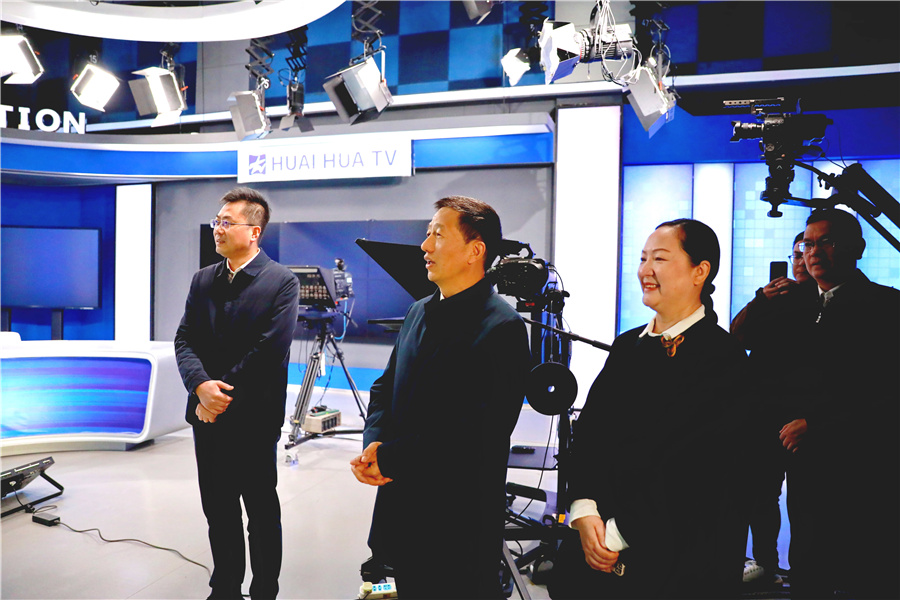 來到懷化市廣播電視臺,許忠建先后察看4K超高清電視轉(zhuǎn)播車、全景演播室、融媒體中心,詳細(xì)了解新聞采編、節(jié)目制作、隊伍建設(shè)等情況。他指出,要精心策劃、精準(zhǔn)對接,爭取央視和湖南衛(wèi)視、湖南經(jīng)視更多關(guān)注報道懷化,提升懷化的知名度和影響力。要把鏡頭對準(zhǔn)基層、對準(zhǔn)群眾,切實增強(qiáng)吸引力和感染力。