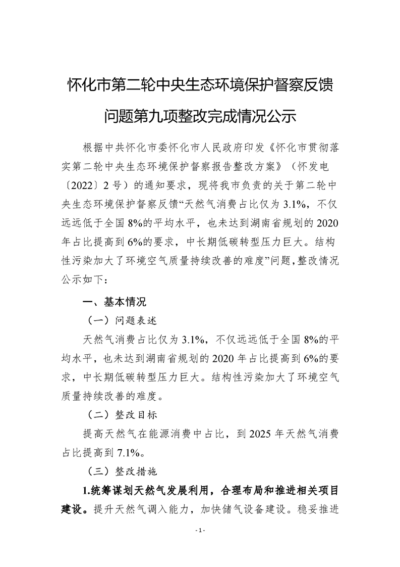 懷化市第二輪中央生態(tài)環(huán)境保護督察反饋問題第九項整改完成情況公示