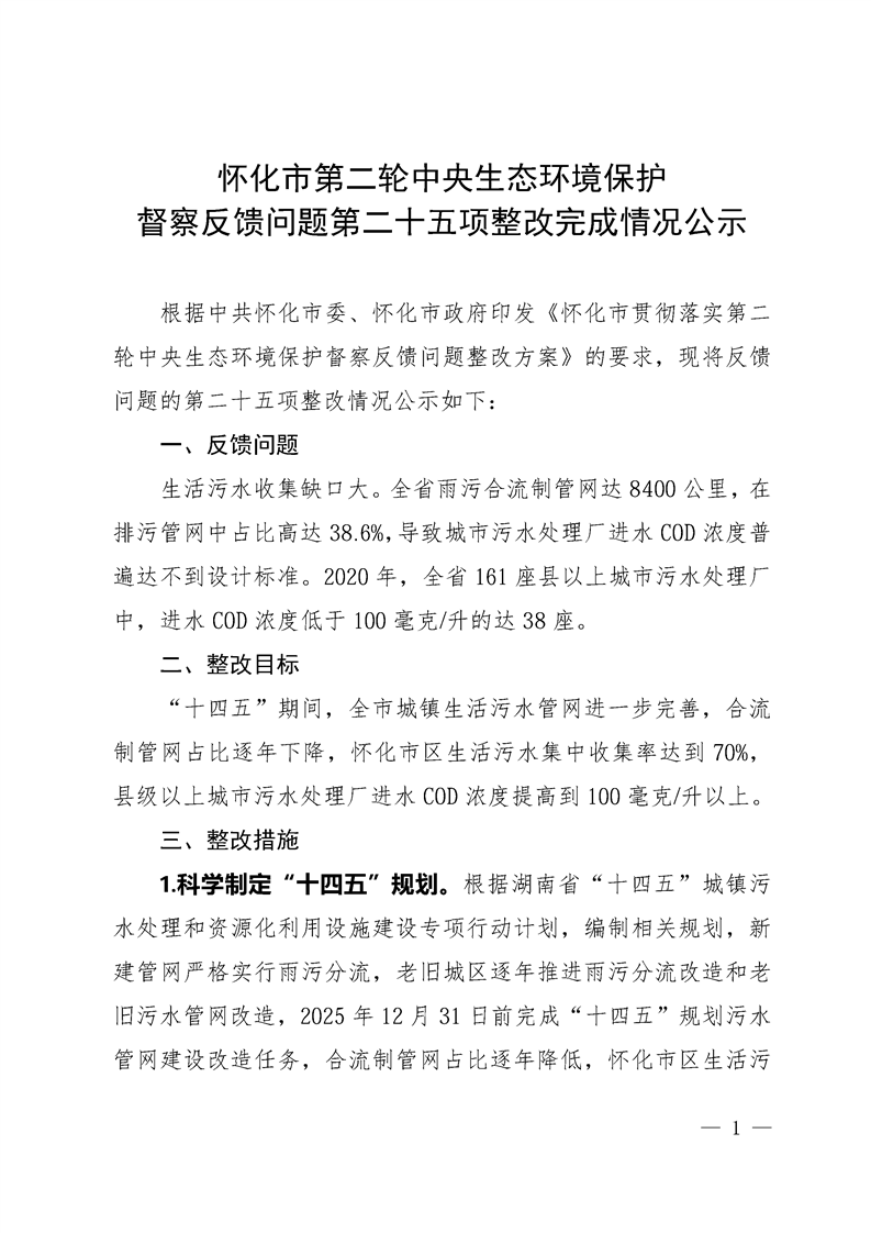 懷化市第二輪中央生態(tài)環(huán)境保護(hù)督察反饋問題第二十五項(xiàng)整改完成情況公示