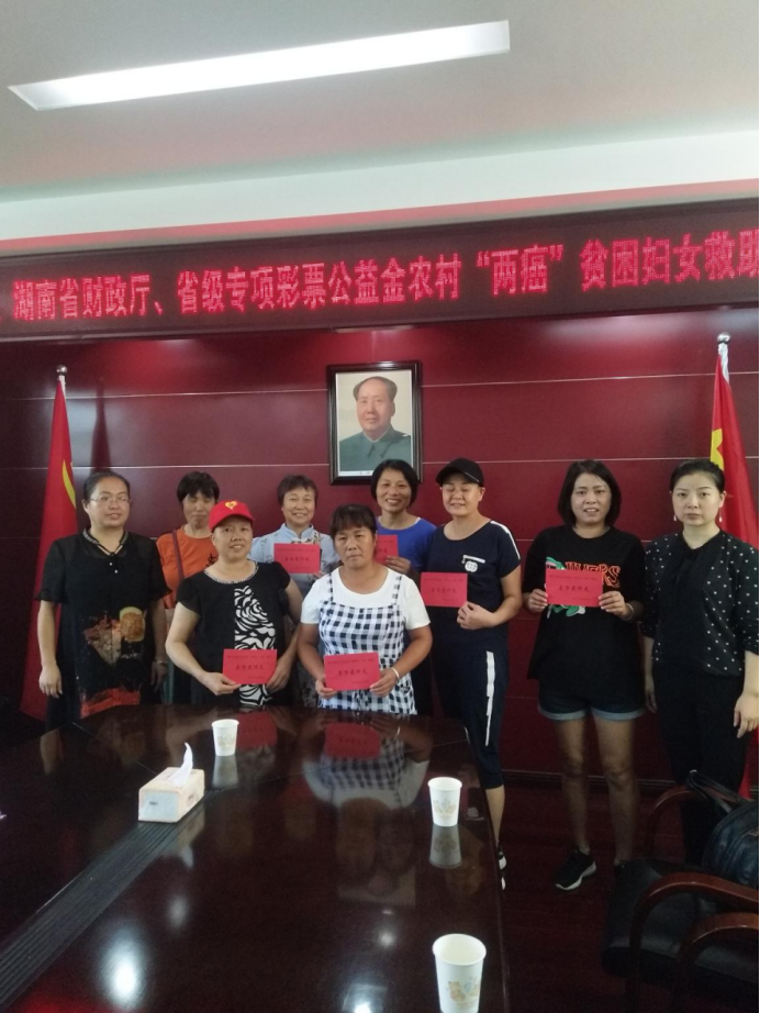 2019年上半年,懷化市共爭(zhēng)取到省級(jí)專項(xiàng)彩票公益金、農(nóng)村“兩癌”貧困婦女救助金32.4萬(wàn)元,救助全市27名兩癌貧困患者,旨在幫助不幸患病的貧困婦女們能充分發(fā)揚(yáng)“自尊、自信、自立、自強(qiáng)”精神,積極樂(lè)觀面對(duì)生活,堅(jiān)強(qiáng)勇敢對(duì)抗病魔,把黨和政府的關(guān)愛(ài)化作戰(zhàn)勝疾病的力量,用頑強(qiáng)的意志創(chuàng)造美好燦爛的明天。(圖為8月28日,洪江市“兩癌”貧困婦女救助金發(fā)放現(xiàn)場(chǎng))