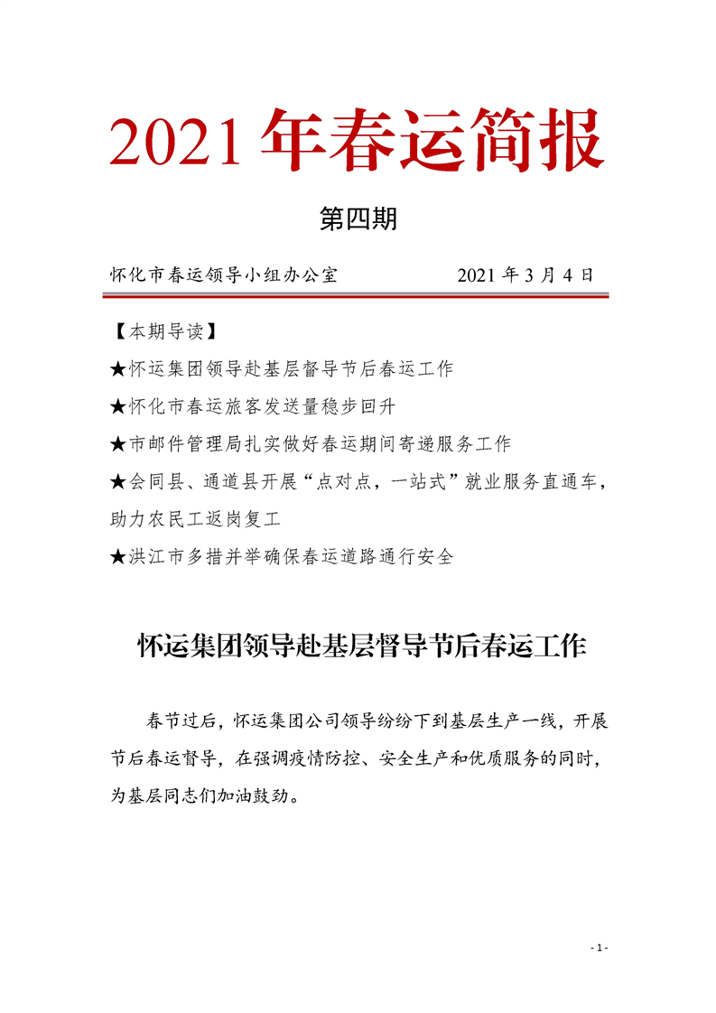 懷化市2021年春運(yùn)簡(jiǎn)報(bào) 第四期