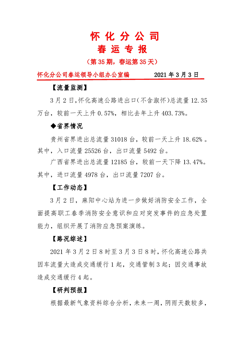 省高速集團(tuán)懷化分公司第35期春運(yùn)專報(bào)