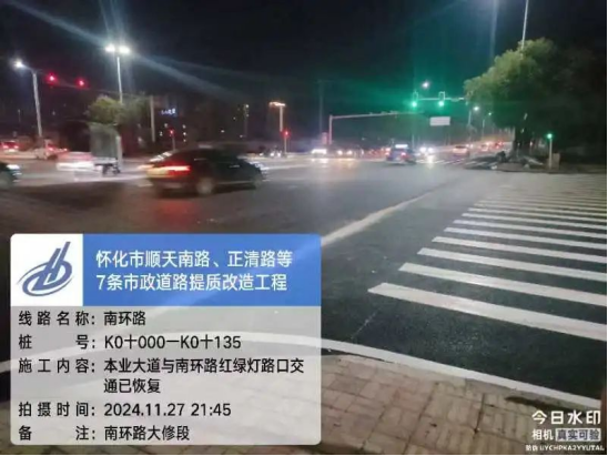截至11月27日晚,南環(huán)路部分道路施工已全部完成并開放交通。至此,該項目涵蓋城區(qū)七條道路提質改造施工已全部完成并通車。懷化主城區(qū)市政道路三期提質改造施工道路包括正清路、南環(huán)路、應民路、順天南路、本業(yè)大道、舞水路及紅星南路。項目施工里程共計13.55km、施工面積達37.57萬平方米,施工過程中均已對各條道路路面病害進行處置,并重新攤鋪瀝青混凝土面層,對應的公交站臺、道路標線及周邊綠化等附屬設施也一并進行提質改造。其中包括舞水路、本業(yè)大道等道路十字路口一并完成提質改造。