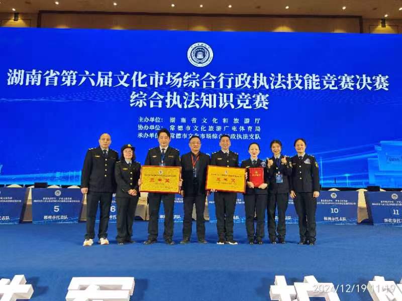 ????12月19日,湖南省第六屆文化市場綜合行政執(zhí)法技能競賽決賽在常德圓滿落幕。本次比賽為期三天,設(shè)置體能測試、政策法規(guī)知識、執(zhí)法文書制作及案卷歸檔、案卷糾錯、平臺應(yīng)用及網(wǎng)絡(luò)案件證據(jù)固定、綜合執(zhí)法知識等6個科目。懷化市采用新老結(jié)合組隊,全力以赴迎戰(zhàn),經(jīng)過激烈角逐,取得多項榮譽(yù):獲團(tuán)體單項案卷糾錯三等獎、平臺應(yīng)用及網(wǎng)絡(luò)案件證據(jù)固定三等獎,沅陵縣文旅廣體局郭麗娟獲政策法規(guī)知識個人二等獎。