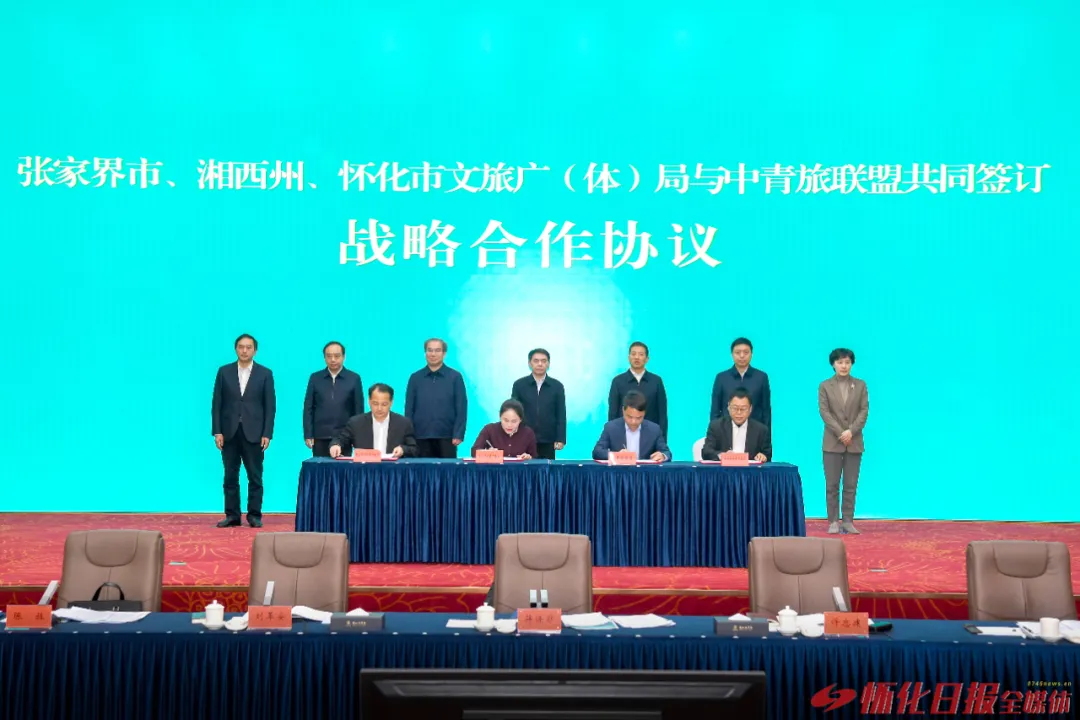 (三市州文旅廣(體)局與中青旅聯(lián)盟共同簽訂戰(zhàn)略合作協(xié)議。以上照片均由懷化日報全媒體記者 楊智偉 攝)(湖南日報全媒體記者 周紫云 易鑫 懷化日報全媒體記者 補秀梅)