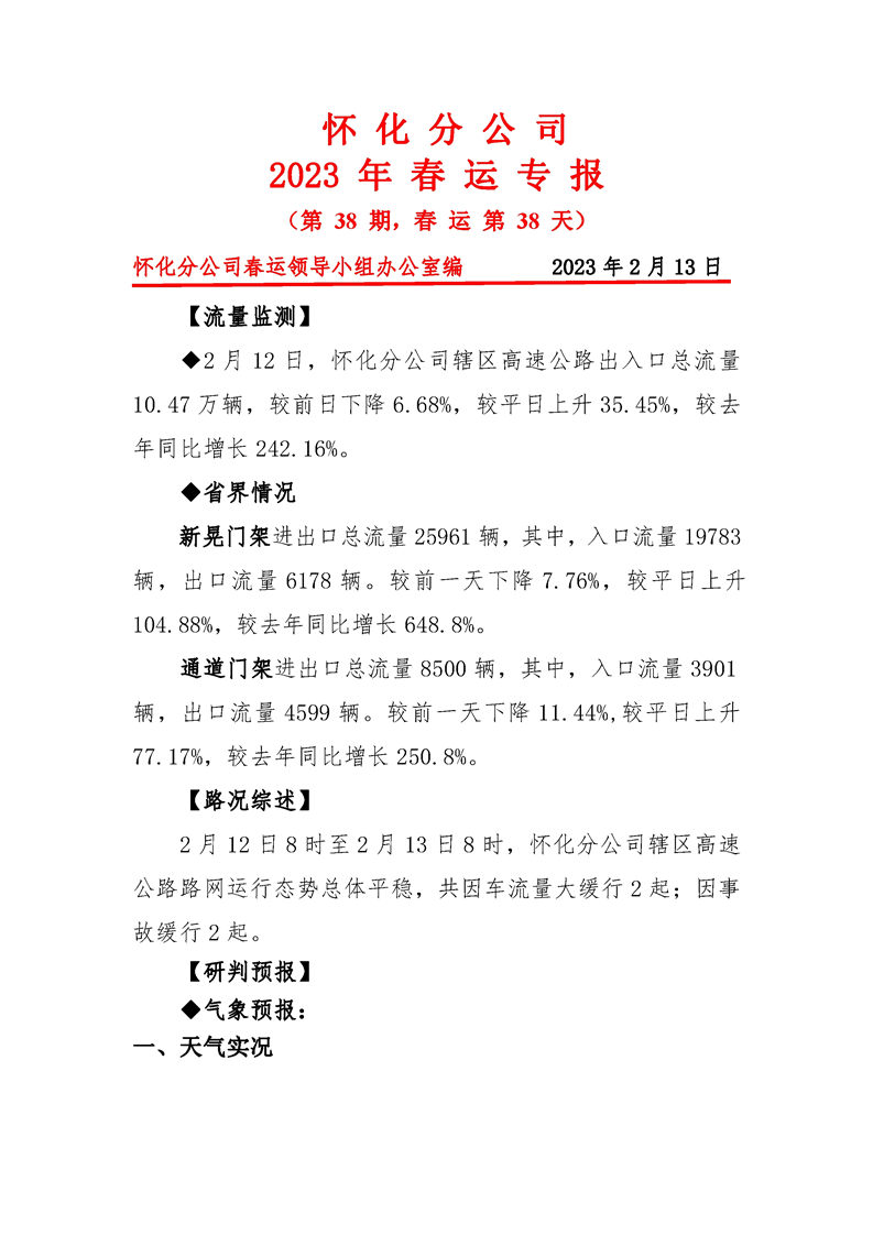 2023年懷化分公司春運(yùn)專報(bào)-第38期