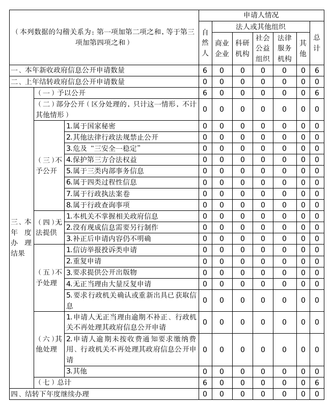 全年收到6件信息公開申請(qǐng),均已按時(shí)辦結(jié)。在行政復(fù)議、訴訟方面,也未收到有關(guān)政府信息公開的行政復(fù)議申請(qǐng),也未發(fā)生關(guān)于政府信息公開的行政訴訟案件。