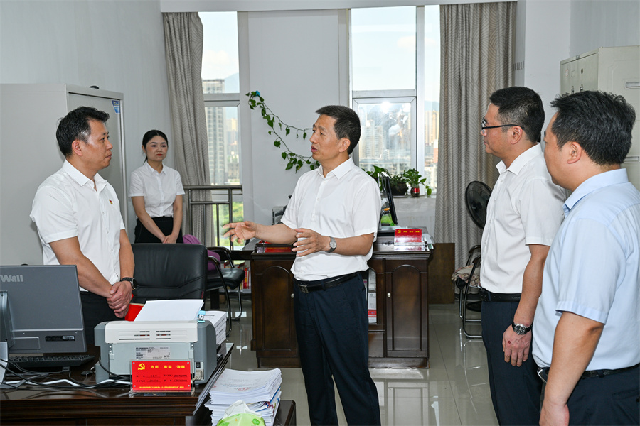 圖為許忠建在市科技局調(diào)研。(以上照片均由懷化日報全媒體記者 潘雨 攝)