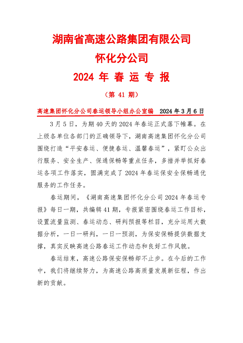 2024年懷化分公司春運專報-第41期