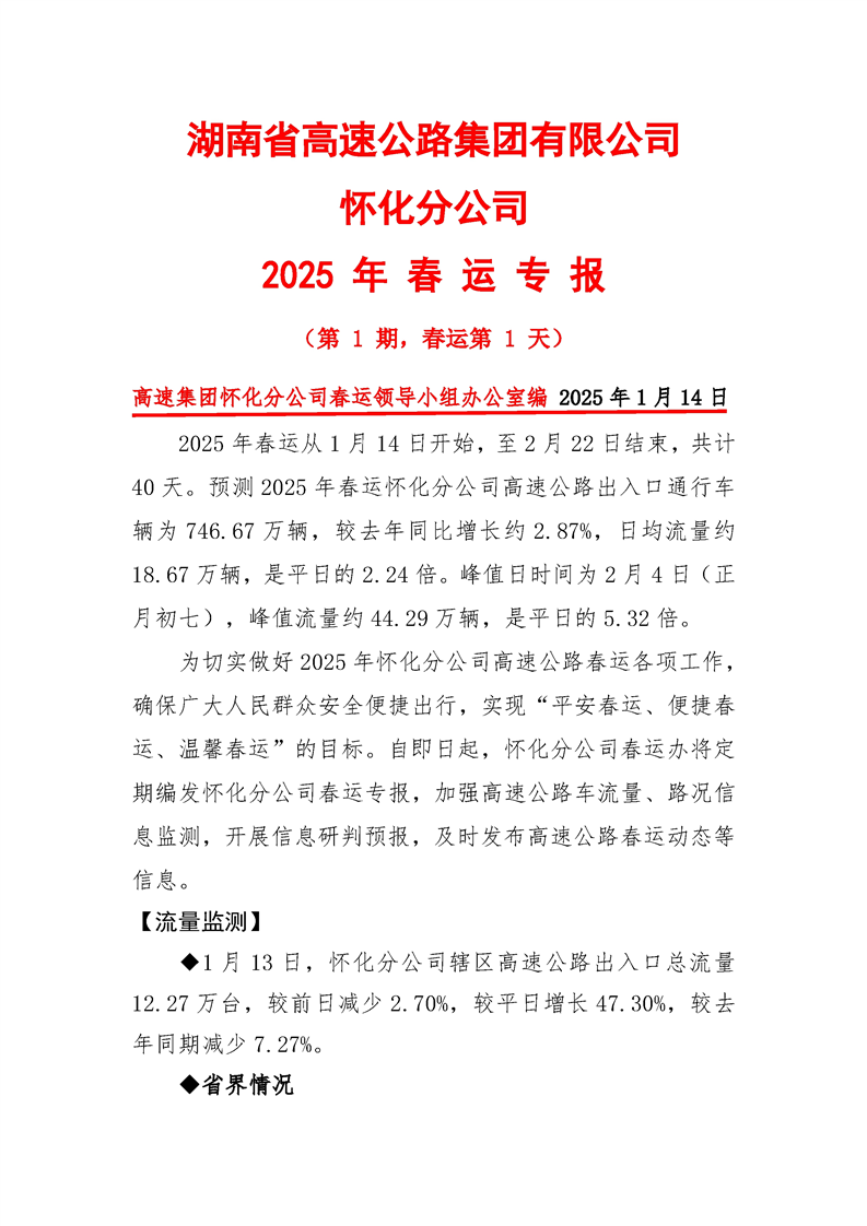 2025年懷化分公司春運(yùn)專報-第1期
