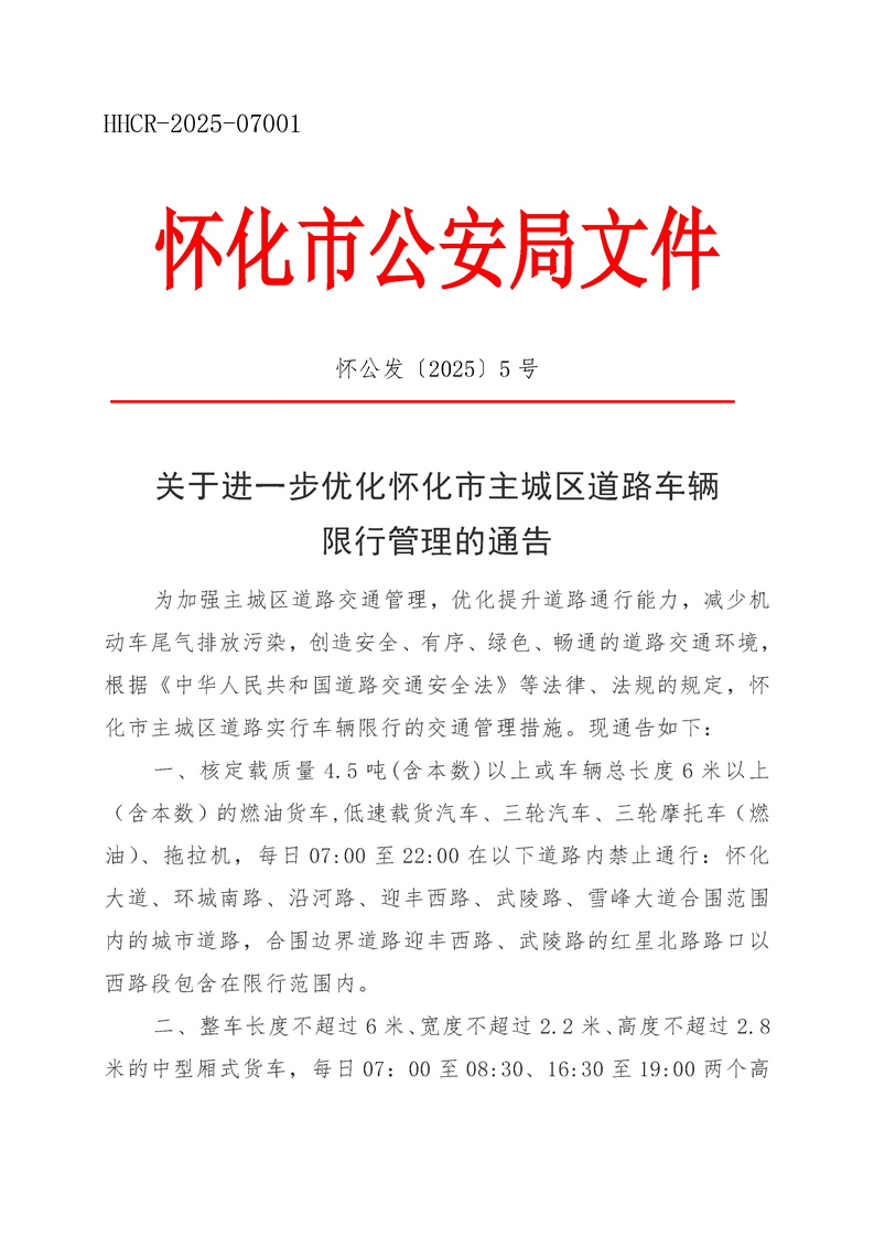 關(guān)于進一步優(yōu)化懷化市主城區(qū)道路車輛限行管理的通告