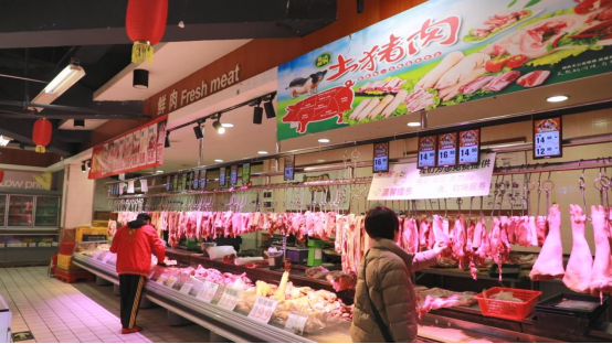 超市里,生鮮攤位前的市民們有序挑選著當(dāng)天的豬肉產(chǎn)品,查看肥瘦,詢問部位和價(jià)格。工作人員則根據(jù)顧客需求切割、稱重。一片安心、祥和的民生圖景。